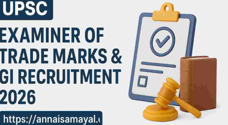 This article provides complete details about the UPSC Examiner of Trade Marks & GI Recruitment 2026, including vacancy details, eligibility criteria, age limit, salary structure, selection process, syllabus, application procedure, and preparation tips.